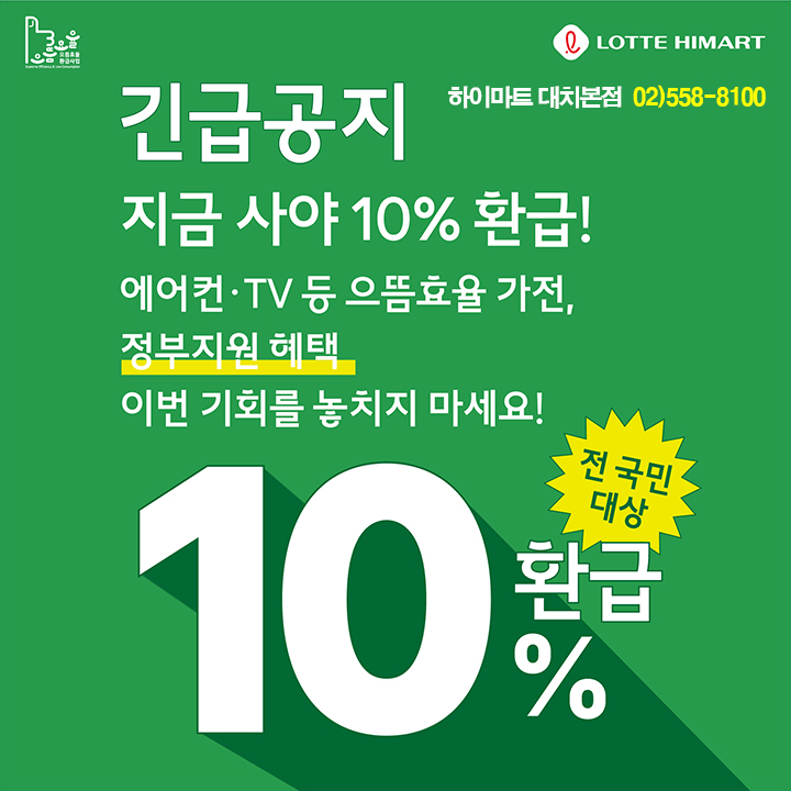 가전을 교체하신다면, 이번 기회에 전기요금 절감 + 환급혜택 두 마리 토끼를 꼭 잡아보시기 바랍니다!!