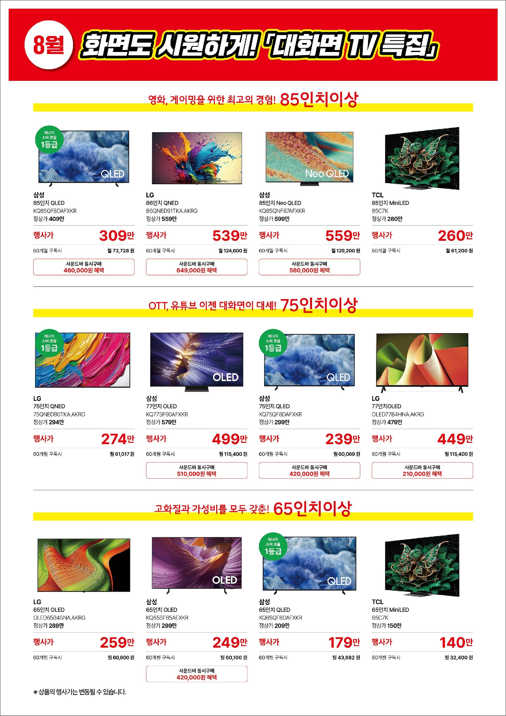 📺 [TV 초대형 특집전 – 85인치 이상도 준비되어 있습니다.]