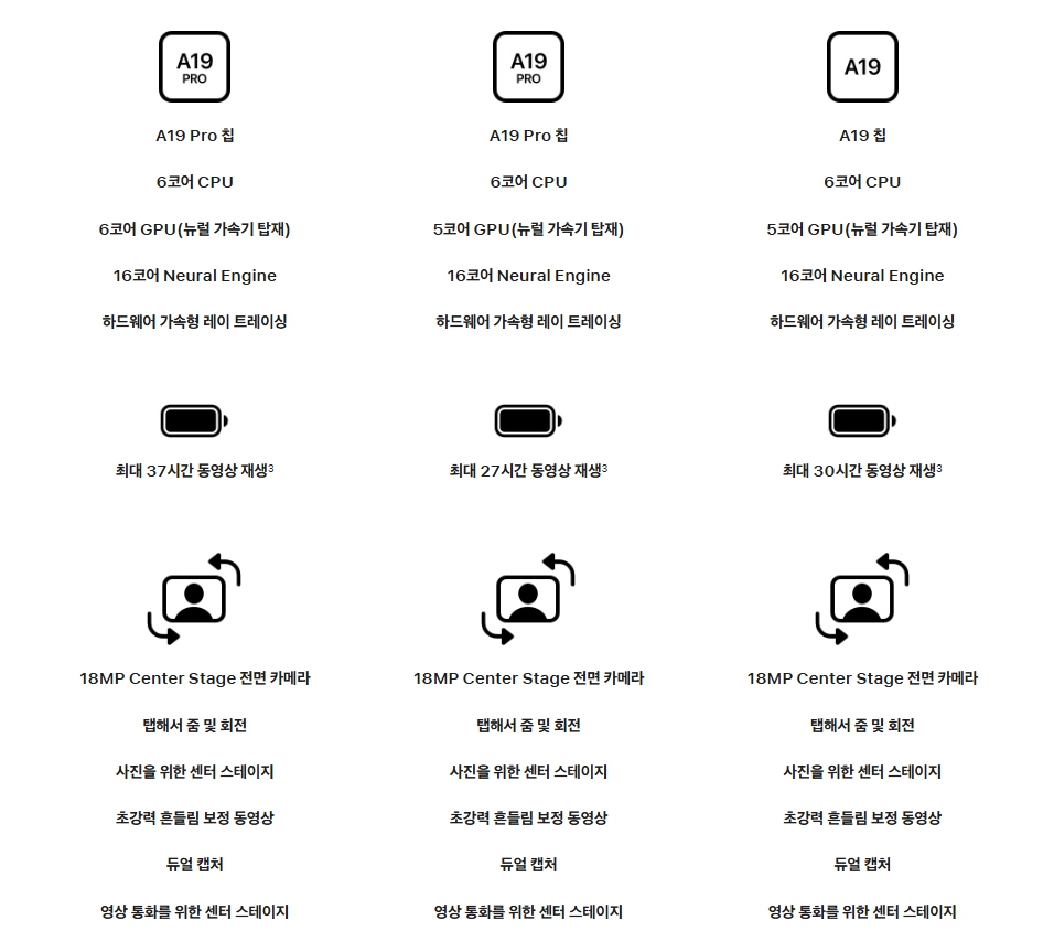 - 칩셋 : A19 탑재, 게임·영상·AI 기능 모두 쾌적한 성능 제공