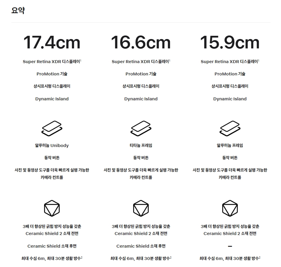 - 디스플레이 : 6.3인치로 확대, ProMotion 120Hz·Always-On 지원
