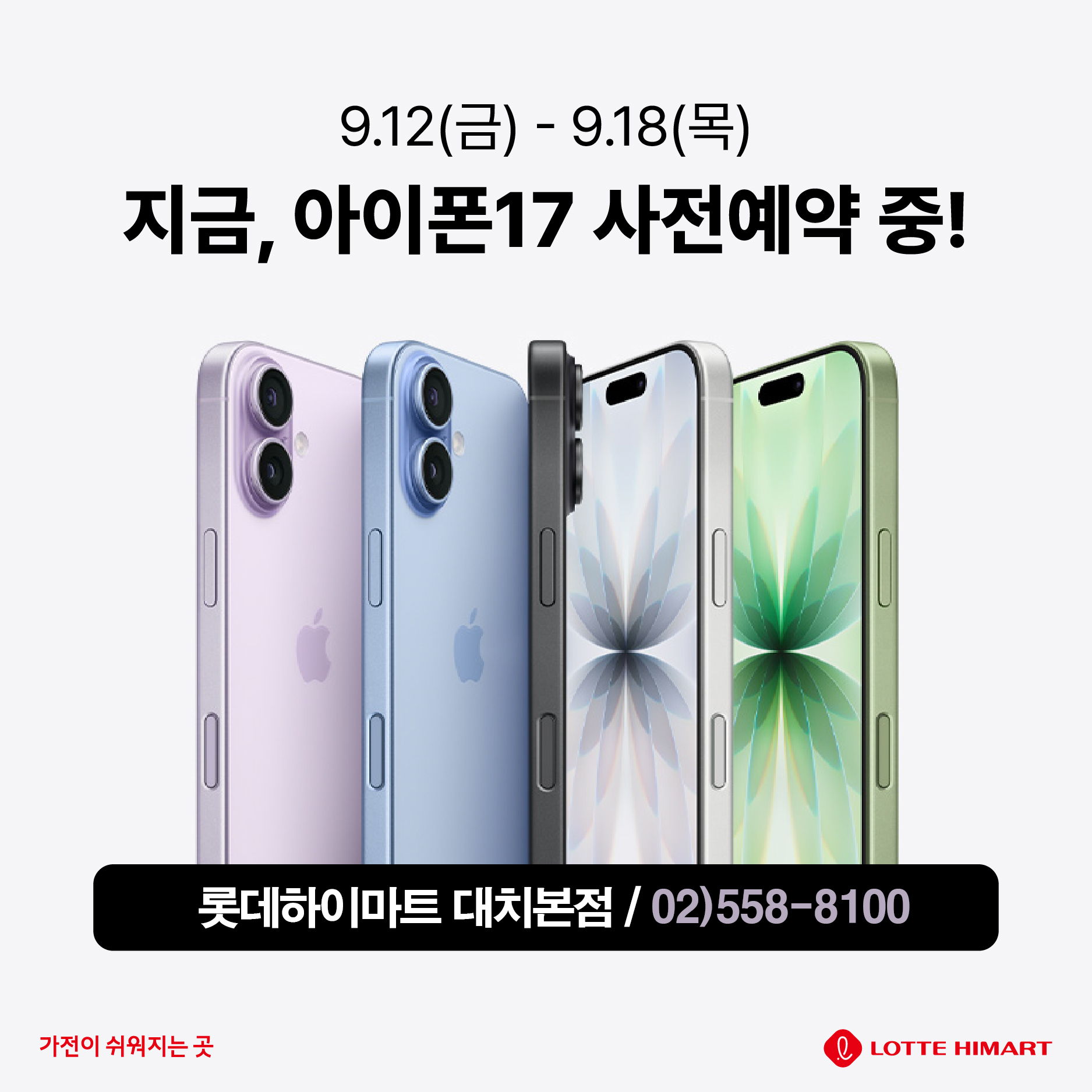 ★ [롯데 하이마트 대치본점] 아이폰 17 시리즈 사전예약 알림!! ★