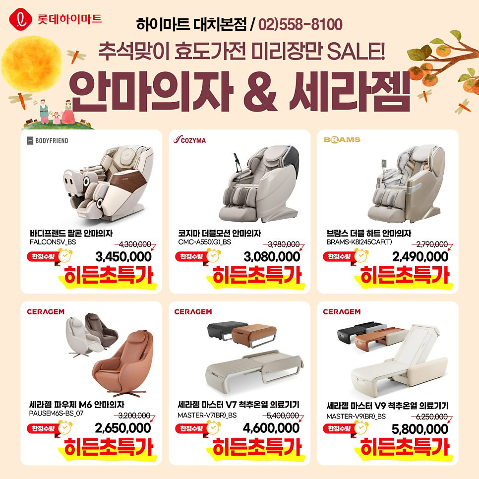 특히 명절 시즌은 다양한 브랜드가 특가와 혜택을 제공하는 절호의 기회이기도 합니다. 하이마트 대치본점에서는 이번 추석을 맞아 바디프랜드, 코지마, 세라젬 등 프리미엄 브랜드의 인기 모델을 엄선하여 특가로 준비했습니다.