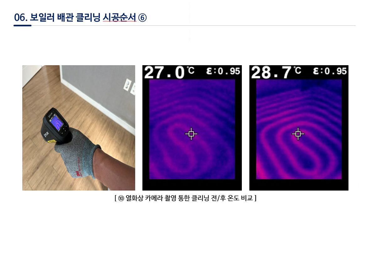 이 과정을 통해 배관 속 열전달률이 새 배관 수준으로 회복됩니다.