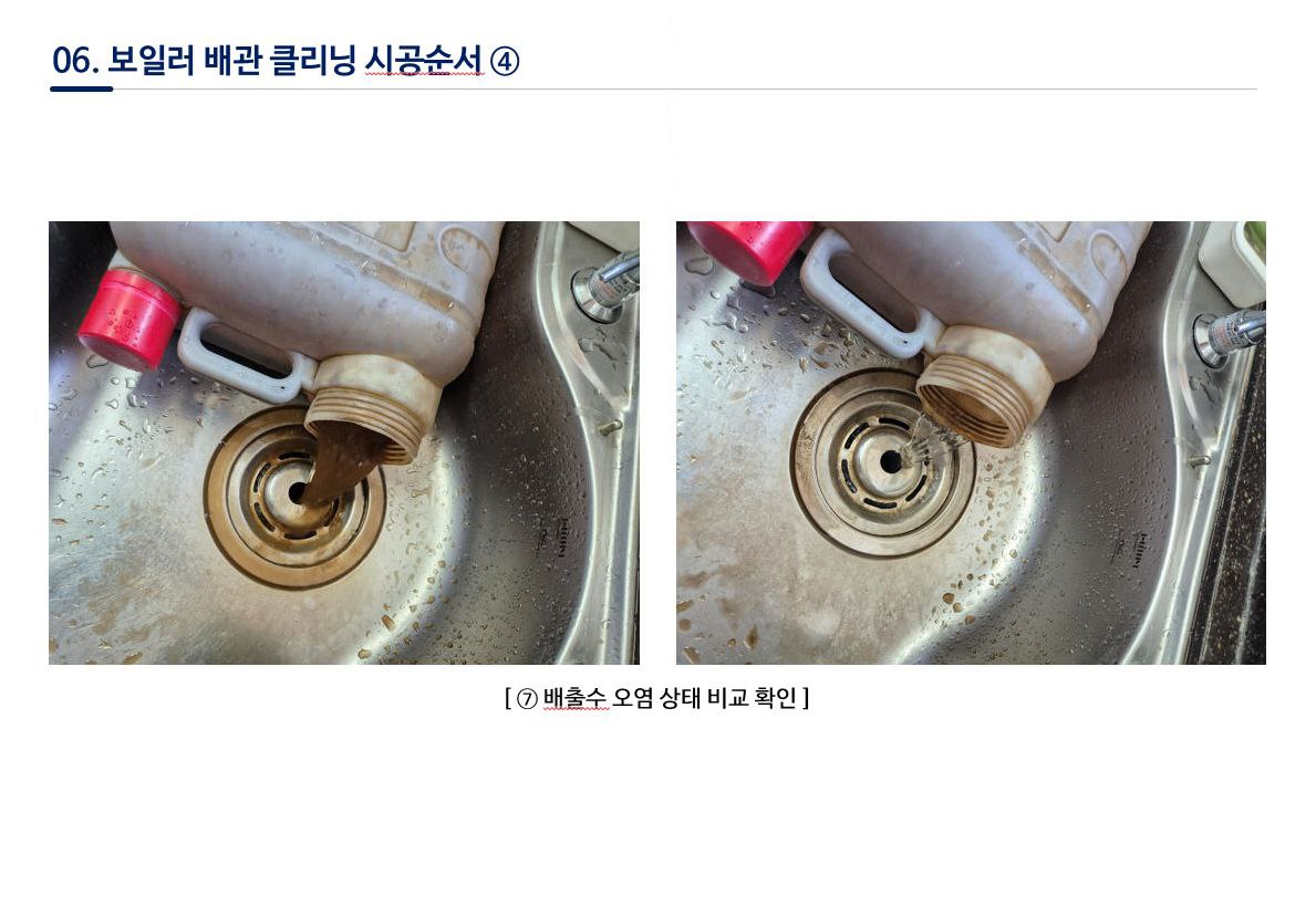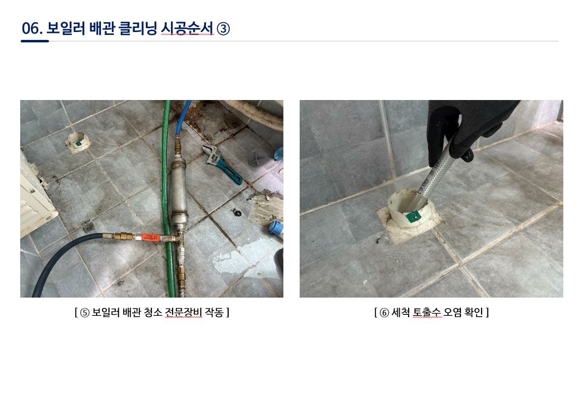 - 세척 전문장비로 배관을 청소해 오염수를 확인