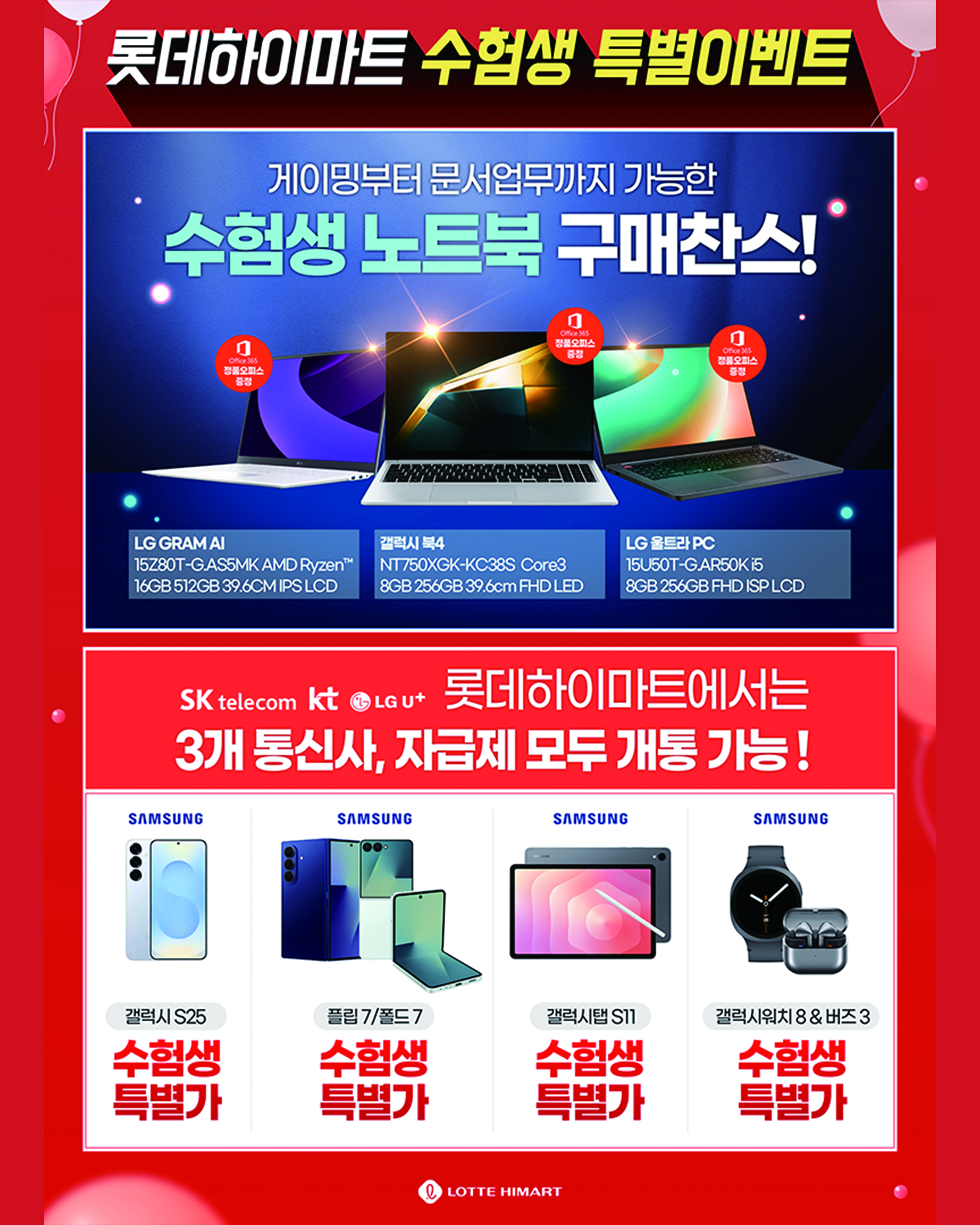 💥 전 통신사 수험생 추가할인 + 자급제 특가
