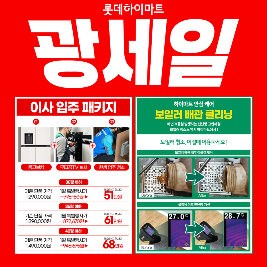 - 난방비 폭탄 걱정 끝! 배관 청소만 해도 난방 효율이 확 올라갑니다.