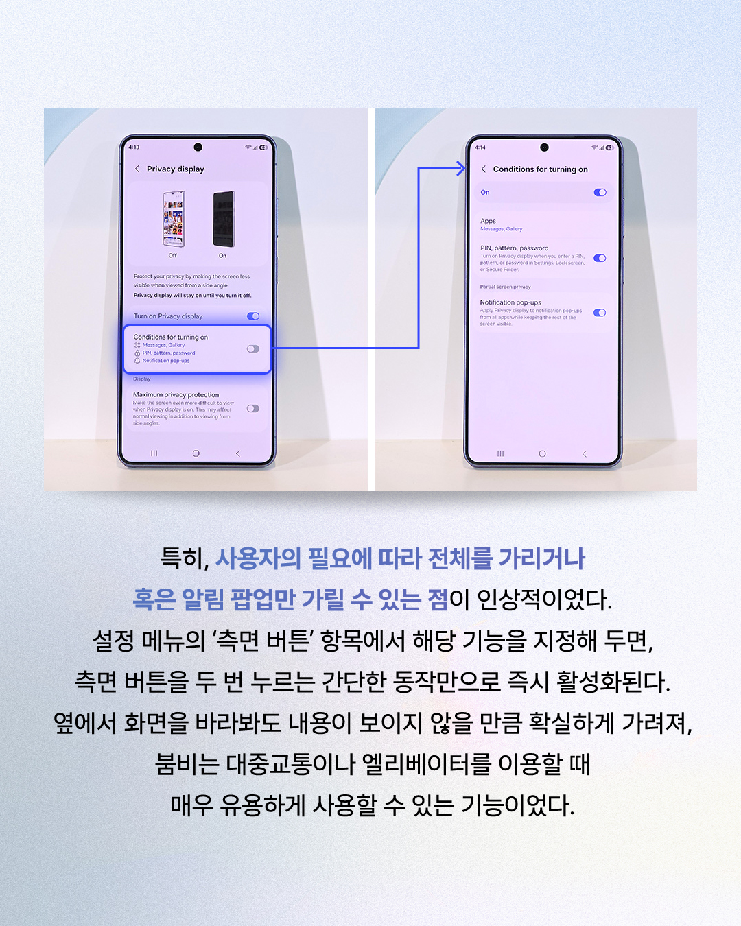 앞서 극찬했던 '프라이버시 디스플레이', 그 디테일한 설정 방법을 아시면 더 놀라실 겁니다.